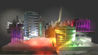 1701Another weekend project: A city filled with color, obscured by fog. No gameplay, just eye candy.
