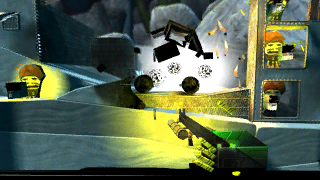 2376701 - 4 players. Advanced verison. Level design partly seen in LBP2 beta. No sacks left behind, includes unqiue co op support so no need to leave your friends behind. Choose either a AK 47 - M16A1. Triangle to pull out your pistol. R2 to reload. Sackbot enemies that take cover and fire. An non stop action packed LBP style FPS. Thanks goes to Evret for ammo logic help.