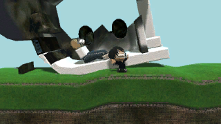 1374In this level, you are in a plane to Chicago,(Why is it always Chicago?) and your plane breaks into pieces, spilling luggage everywhere!