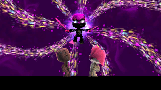 3255As Sackboy searches for inspiration, a flying Sackgirl arrives before him, beaten badly. They encounter an old foe, with Sackboy taking it upon himself to stop this menace. While Sackgirl searches for help, will Sackboybe able to withstand this enormous power?