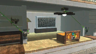 513A detailed 3D mansion. To go up the stairs from the ground floor, jump on the farthest back depth stair on the right staircase. Sometimes it helps if you jump from the piano. Music selection is on the top floor and to the left.