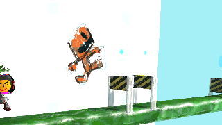 243勇者のくせになまいきだ:3Dをテーマにしたステージ2つ目。今回は勇者側で魔物退治。王様「伝説の勇者様しょうた君が援軍を求めてる。リビッツたん、行ってきてネ^^」って感じの設定です。最深部に居る魔王を捕まえて地上へ運んで下さい。注意:進みにくい時は容赦なく魔王を投げましょう。水に入るとグラブギア外れます、近くにグラブギアあるので装着し直して下さい。 PS4LBP3でのバグを修正。