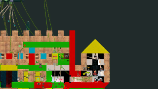 1471段ボールの積み木(ブロック)で作ったビルを意識しました。建築中の隣のビルへ脱出して下さい。工事作業員を増やしました。2011.09.21工事作業員の粗を修正。